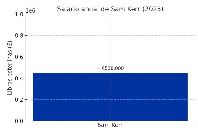 Jugadora del Chelsea, la delantera australiana Sam Kerr reporta ₤448 000 por año . Su carrera comenzó en Perth Glory, pasó por NWSL y regreso al WSL en 2020.
