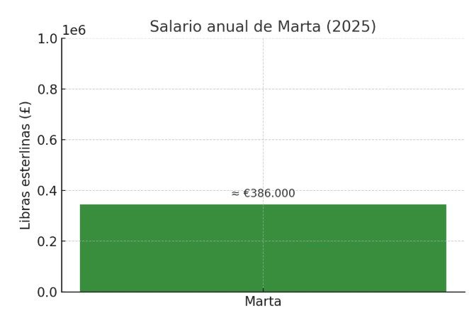 - Salario: £830 000 anuales (≈ €1 000 000).