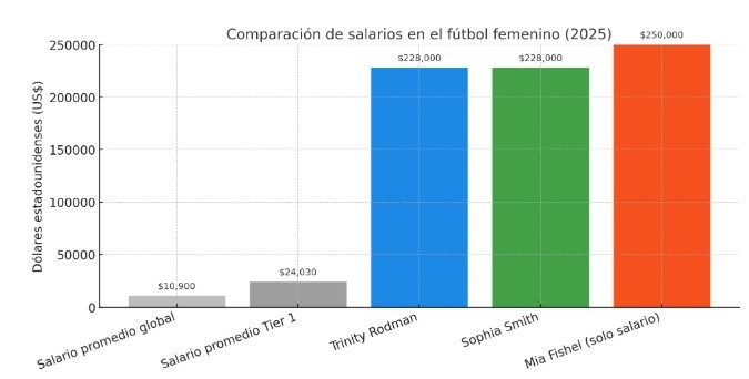 Mientras ellas encabezan la lista, el salario promedio global femenino es solo US$10 900 según FIFA y en Tier 1 ronda los US$24 030.