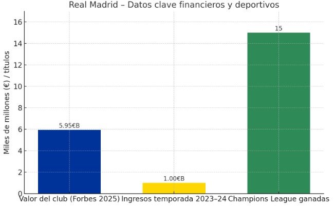 En la temporada 2023‑24 alcanzó ingresos de $1.13 bn (~€1 00 m), siendo el primero en superar los mil millones en ingresos, un hito histórico. Tras fundarse en 1902, ha conquistado 15 Champions League, y su marca ha sido perfeccionada por décadas de éxitos deportivos y expansión global.