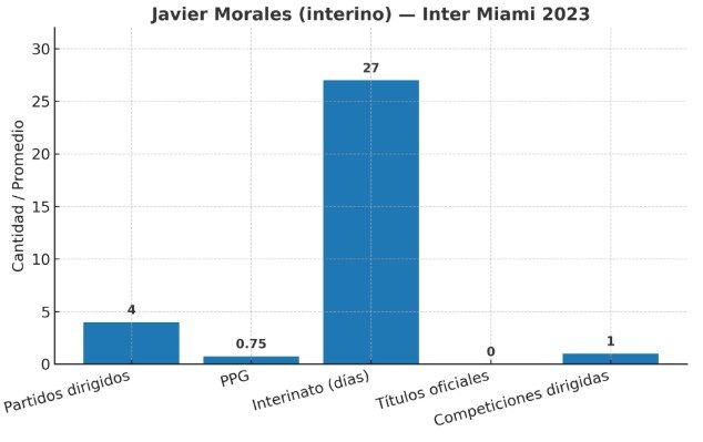 - Javier Morales (interino): 1 de junio de 2023 – 27 de junio de 2023. 4 partidos; 0.75 PPG. Puente entre Neville y Martino.