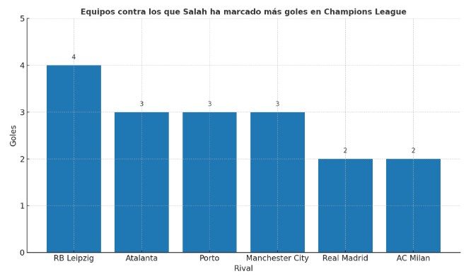 No todos los rivales sufren por igual. Salah ha sido especialmente letal contra ciertos equipos: