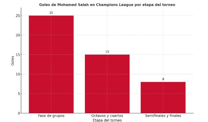 Estos goles no se han repartido de forma pareja: hay picos de rendimiento en temporadas donde Liverpool fue finalista o semifinalista, y otros más discretos cuando el equipo no logró avanzar tanto.