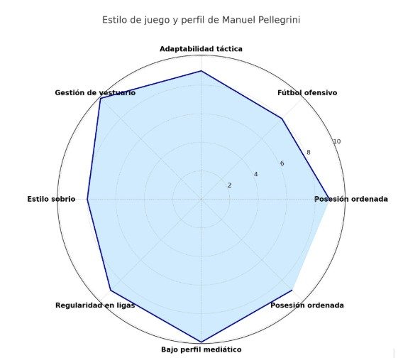 Pellegrini es reconocido por su estilo sobrio, de posesión ordenada, fútbol ofensivo y un manejo de vestuario casi quirúrgico. Es un técnico que no entra en polémicas y que ha sabido adaptarse a contextos muy distintos: desde el fútbol europeo de élite hasta la inversión asiática.