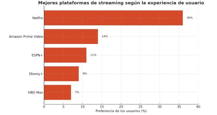 Netflix sigue siendo el favorito indiscutido cuando se trata de experiencia de usuario. Un 36% de las personas encuestadas lo eligen por encima de otras plataformas, lo que sugiere que su interfaz, navegación y recomendaciones siguen marcando la pauta. Después de tantos años en el mercado, Netflix ha logrado mantener esa ventaja que muchas plataformas todavía están tratando de alcanzar.