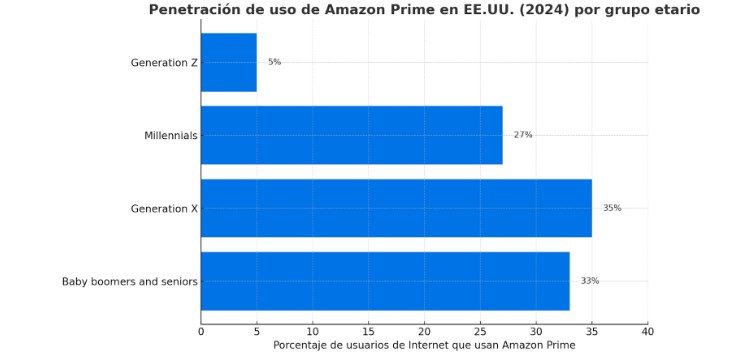 Lo primero que sorprende es el bajo porcentaje de uso entre la Generación Z, con apenas un 5%. Esta brecha puede explicarse por varios factores: muchos aún viven con sus padres, tienen presupuestos limitados o simplemente prefieren otras plataformas más asociadas a su estilo de consumo, como YouTube o TikTok. En ese sentido, Prime Video —y Amazon en general— parece no estar siendo parte central de su día a día digital.