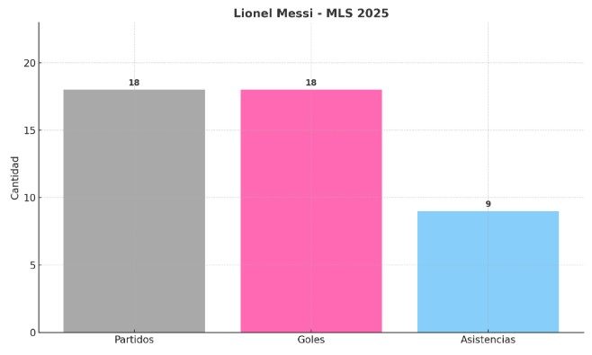 En MLS 2025: 18 partidos, 18 goles y 9 asistencias (datos oficiales del club). En 2024 ya había firmado cifras de doble dígito y títulos, y su racha de récords individuales sigue al alza (dobletes encadenados inéditos en la liga).