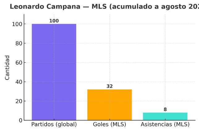 MLS 2025: 20 titularidades, 5 goles y 11 asistencias en liga (perfil estadístico que muestra su mutación hacia facilitador/segundo punta). En 2024 había brillado como killer puro. En torneos de copa también ha sido decisivo con goles y pases clave.