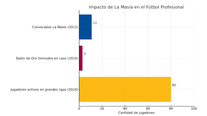 - Según Transfermarkt (2024), La Masía ha producido más de 80 futbolistas profesionales activos en las cinco grandes ligas europeas.